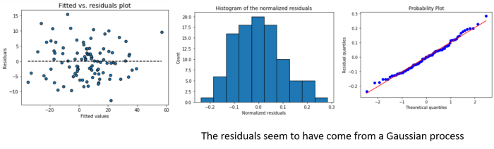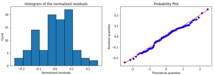 - Histogram and the quantile-quantile (Q-Q) plot of the residuals (this checks for the assumption of Normality of the error distribution)