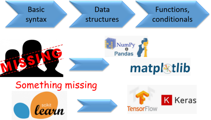 The popular MOOCs and boot camps for data science/AI/ML do not help either.
