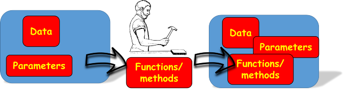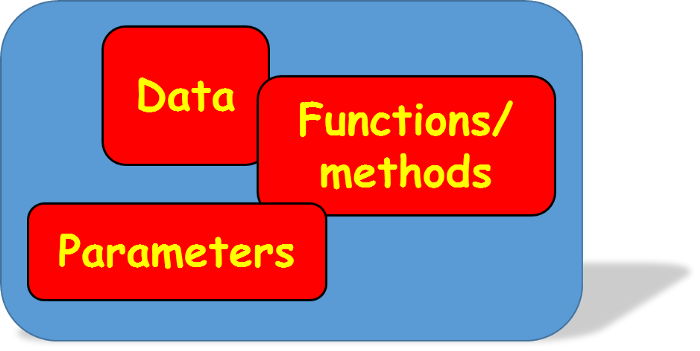 Data, functions, and parameters are cohabitating inside a single logical unit.