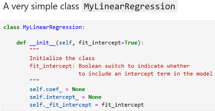 In this Github repo, I have shown, step-by-step, how to build a simple linear regression (single or multivariate) estimator class following the OOP paradigm.