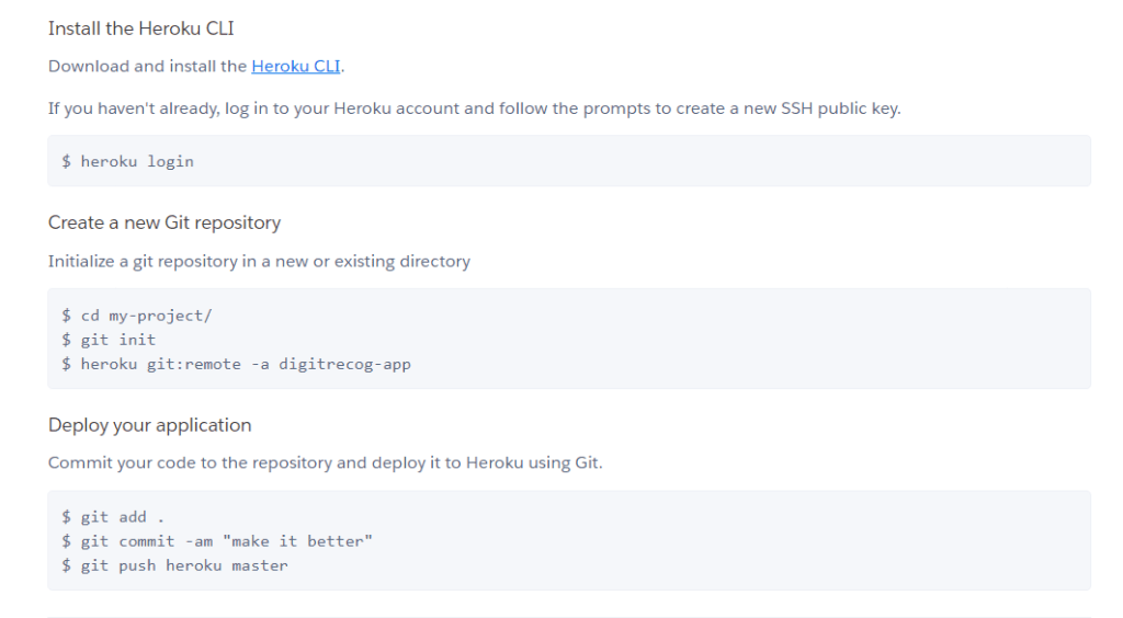 after that git init in our project directory and add git remote url to heroku url and push our project folder to heroku with requirements.txt files included.