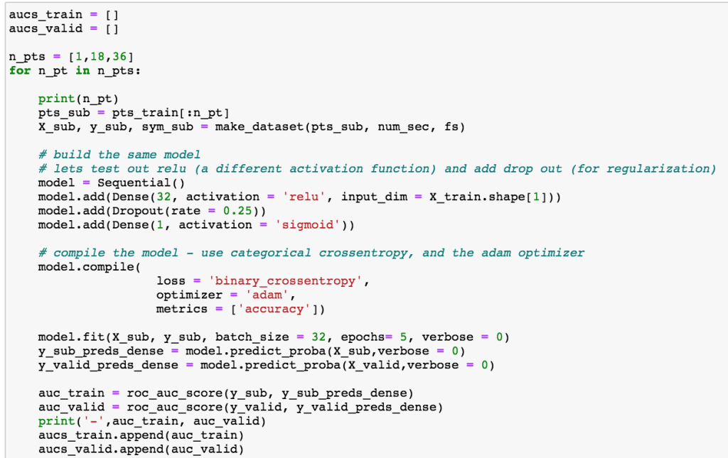 Now we are ready to build our first dense NN. We will do this in Keras for simplicity. If you would like to see the equations for dense NN and another sample project see my other post here which is a deep learning follow-up on a diabetes readmission project I wrote about here.