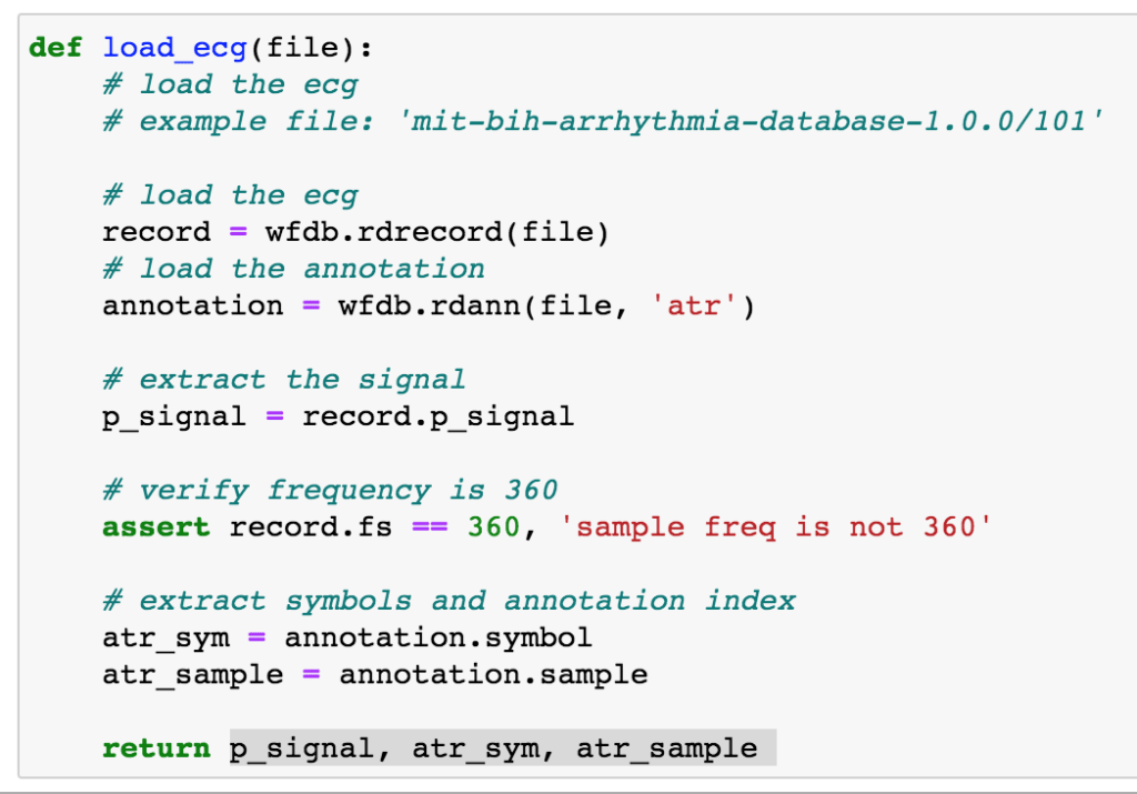 Let’s write a function for loading a single patient’s signals and annotations. Note the annotation values are the indices of the signal array.