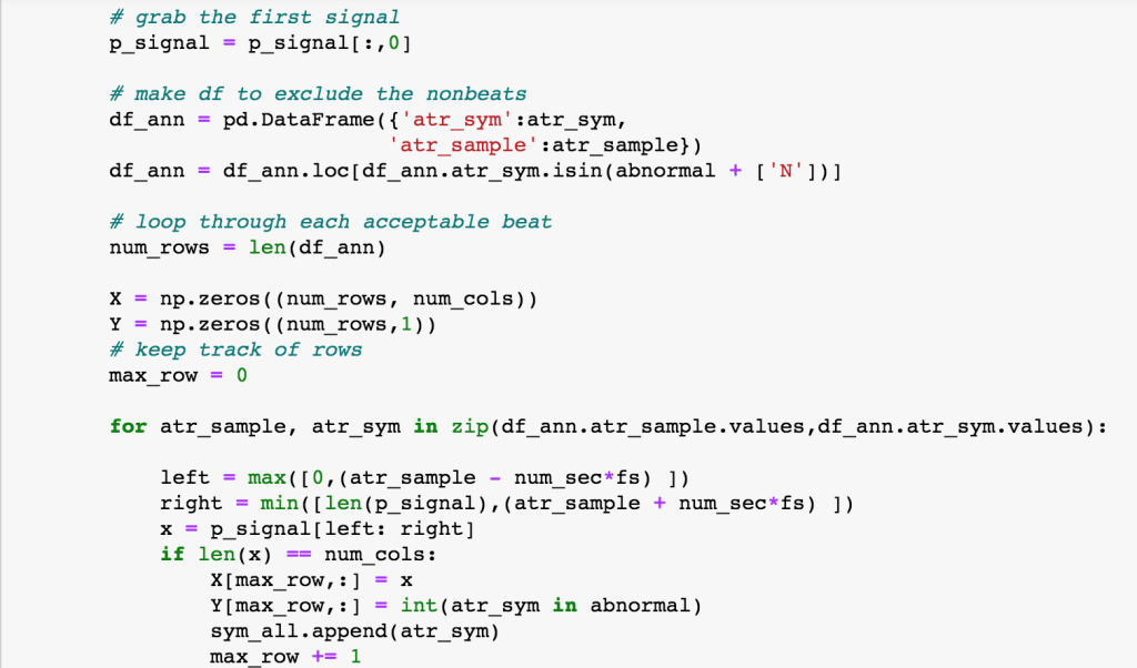 Recently, I was reviewing Andrew Ng’s team’s work(https://stanfordmlgroup.github.io/projects/ecg/) on heart arrhythmia detector with convolutional neural networks (CNN). I found this quite fascinating especially with the emergence of wearable products (e.g. Apple Watch and portable EKG machines) that are capable of monitoring your heart while at home. As such, I was curious how to build a machine learning algorithm that could detect abnormal heart beats. Here we will use an ECG signal (continuous electrical measurement of the heart) and train 3 neural networks to predict heart arrhythmias: dense neural network, CNN, and LSTM.