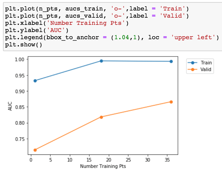 Given the overfitting between training and validation. Let’s make a simple learning curve to see if we should go collect more data.