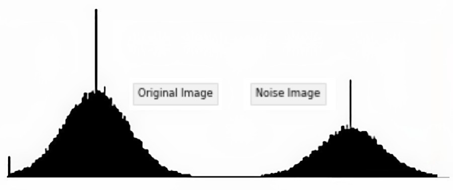 We can check the histogram for each image to appreciate the effect of applying Gaussian Noise: