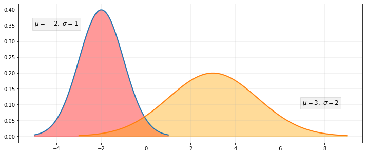 for mean, stdev, param in zip(means, stds, params):
