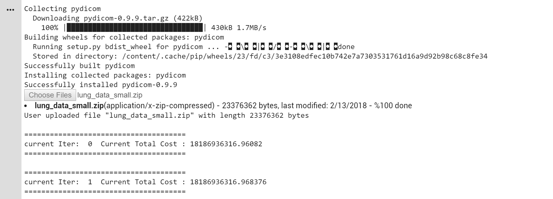 3. The program will finish uploading the data into Google Colab and it will continue running.