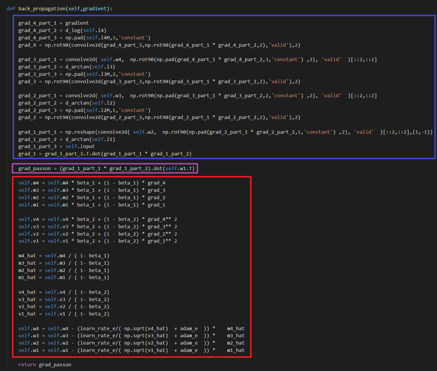 Purple Box → To pass on the gradient to the Encoder, calculate the gradient to pass on before updating the weights