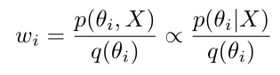 Just like with the Metropolis algorithm, we never have to evaluate p(X) because it cancels out when taking the weighted average (see a pattern?). Luckily we already have a convenient q to sample from: our fitted variational distribution. It is well-known that the importance weights can have infinite variance if p and q don’t overlap much.