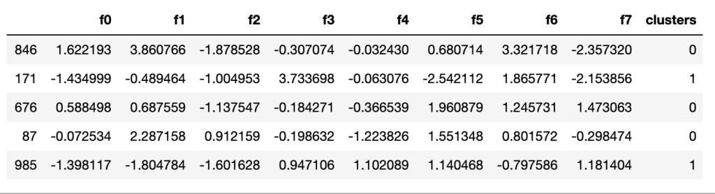 We now have a new feature called “clusters” with a value of 0 or 1.
